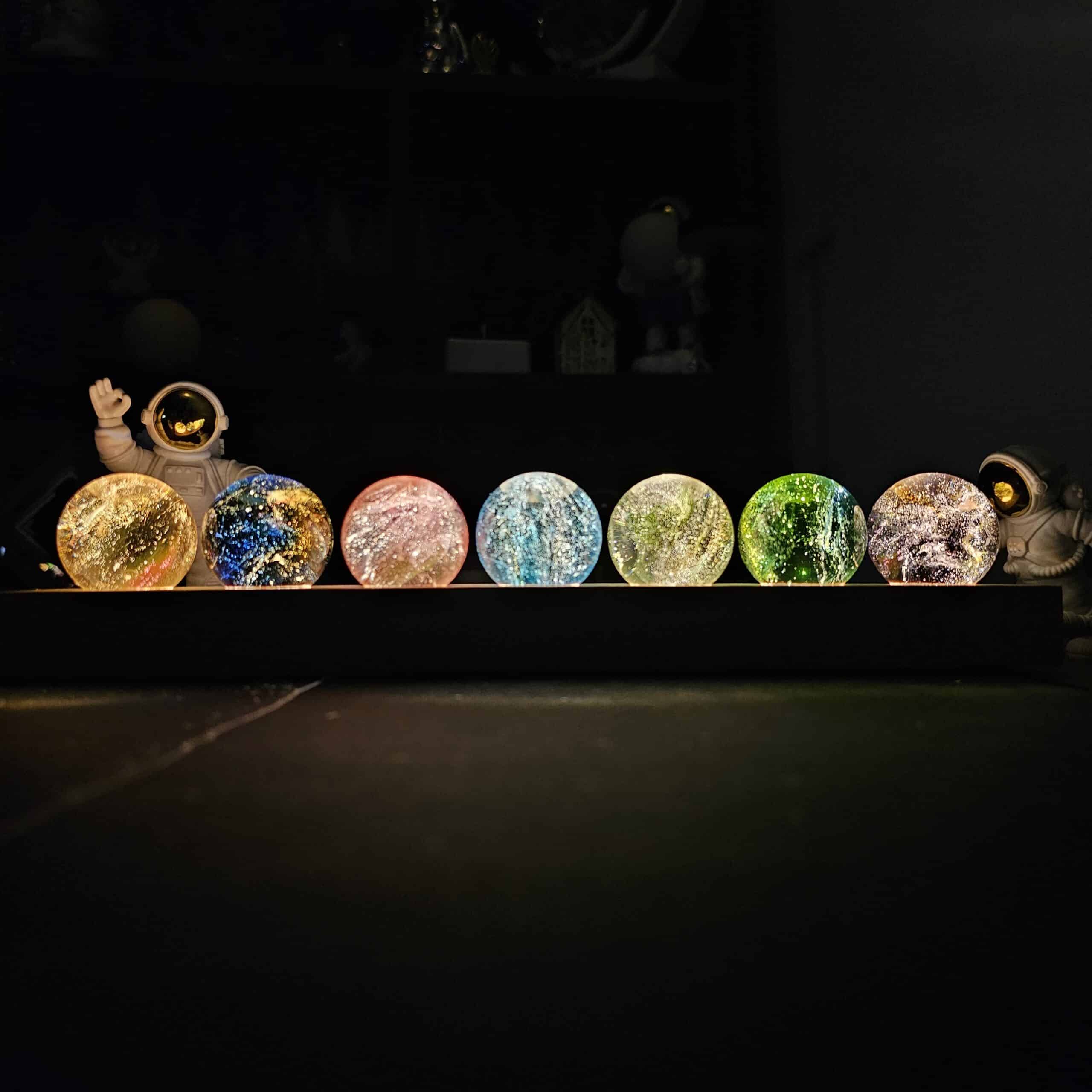 At the heart of “7 Stars” lies its mesmerizing LED lighting. Each space within the wooden base has vibrant LED lights that transform this piece into a breathtaking spectacle. The colorful and radiant glow accentuates the intricate details of the glass star balls, creating an ambiance that is both soothing and awe-inspiring.