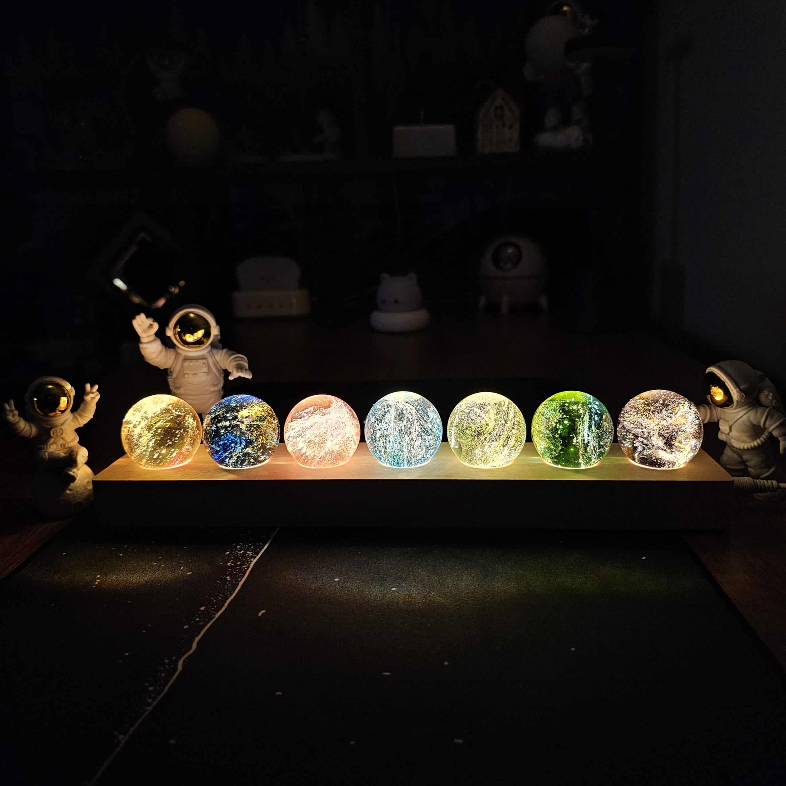 Choose between two distinct base designs to suit your style: Linear Base and Circular Base. Crafted from high-quality wood, both bases are meticulously designed to securely hold the seven glass star balls.