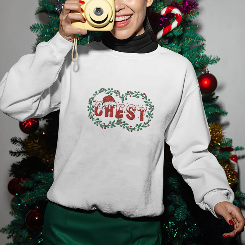 Chest Nuts Matching Couple Embroidered Sweatshirt, Merry Christmas Crewneck Holiday Embroidery Sweatshirt