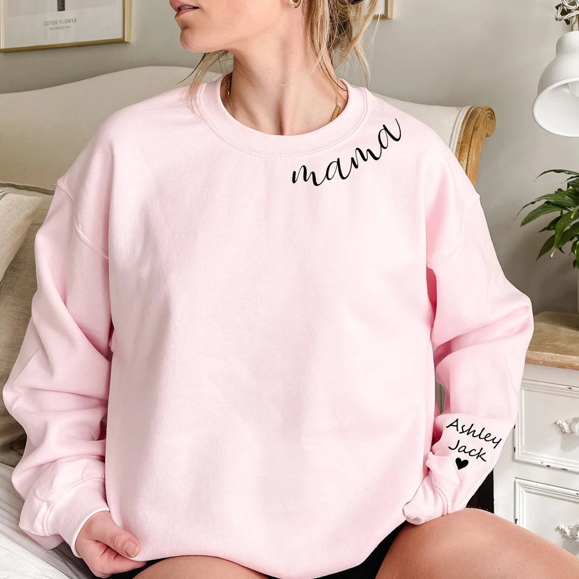 Custom Mama Sweatshirt with Children Name on Sleeve