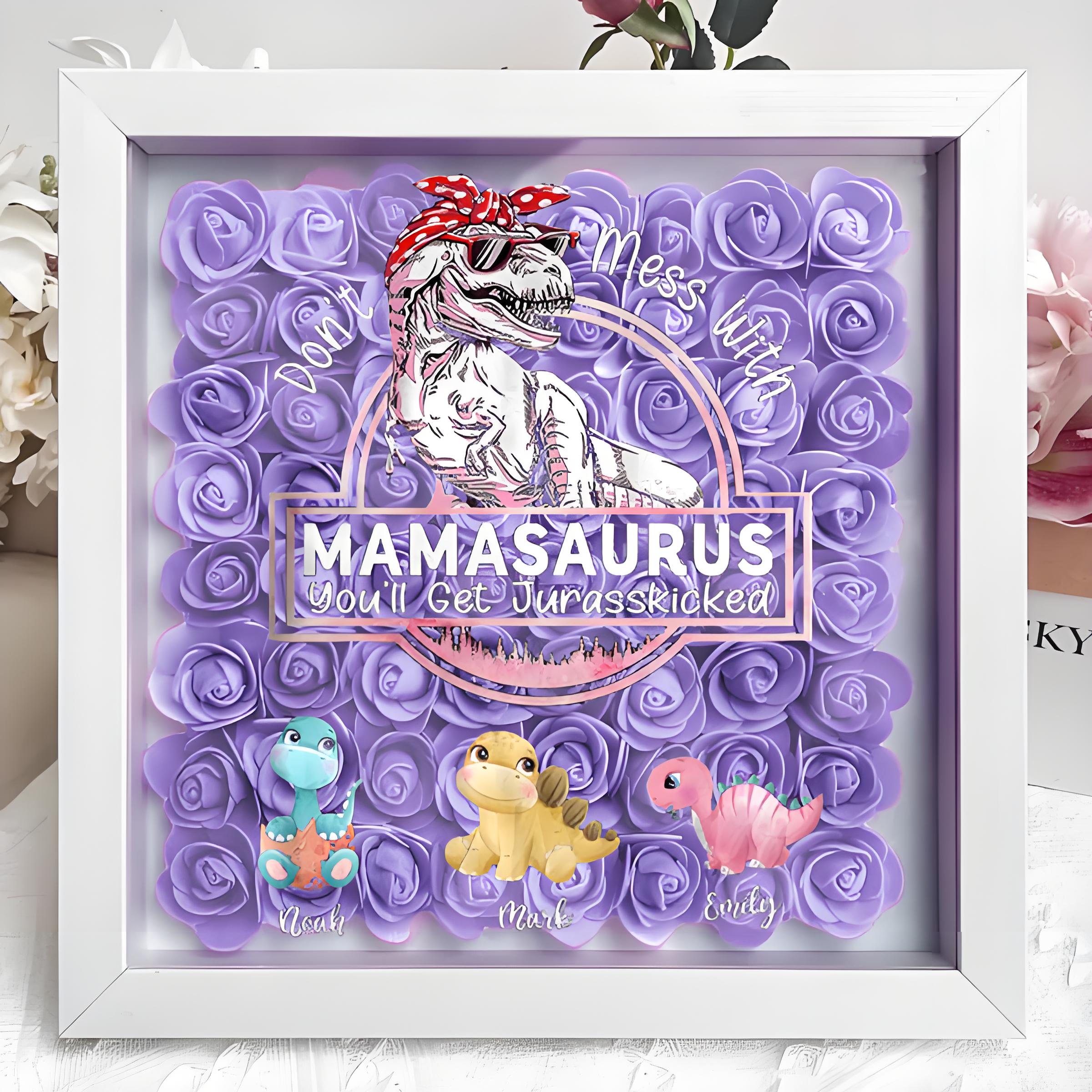 Don't Mess With Mamasaurus, You'll Get Jurasskicked - Personalized Flower Shadow Box