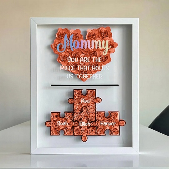 Mother’s Day Puzzle Flower Box | Paper Flower Shadow Box | Customized Gift for Birthdays, Anniversary, Mother's Day