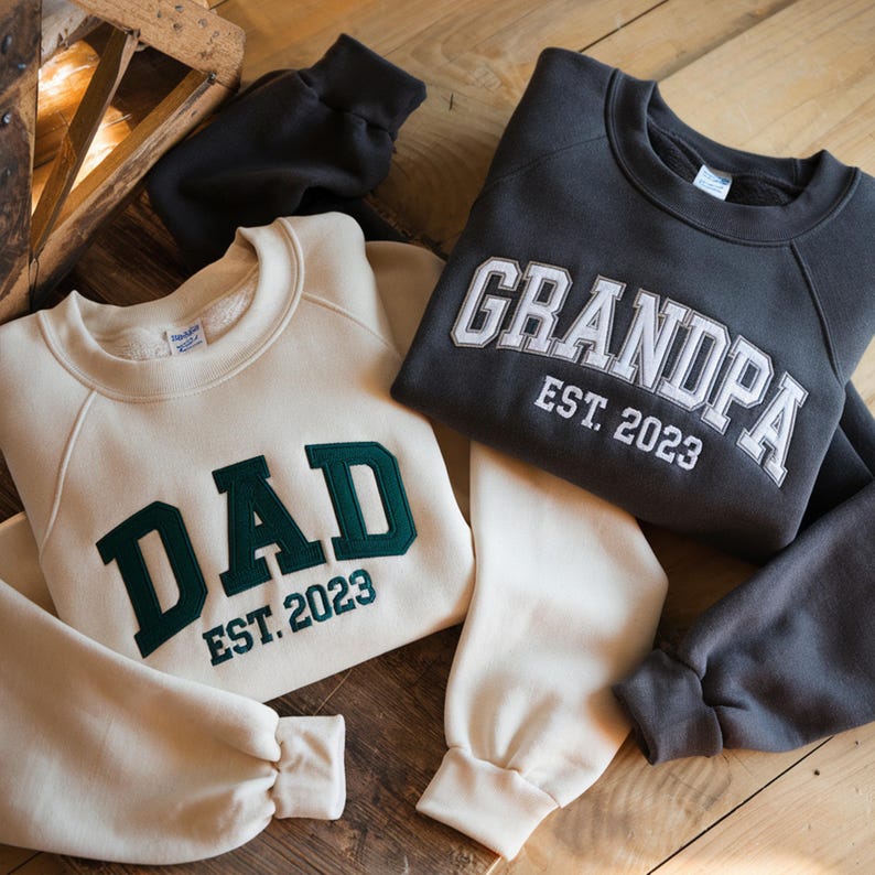 Personalized Embroidery Shirt, Custom Dad/Grandpa Sweatshirt With Grandkids Names On Sleeve