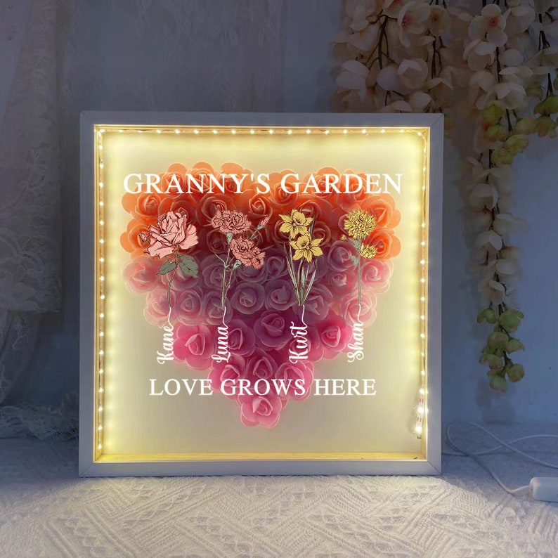 Personalized Mom Flower LED Light Shadow Box Handcrafted Mom's Present