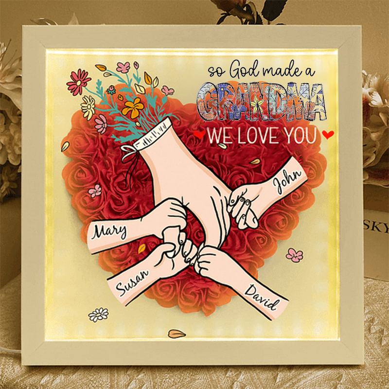 Personalized So God Made A Mama Flower Shadow Box, Custom Mommy Hand Holding With Names
